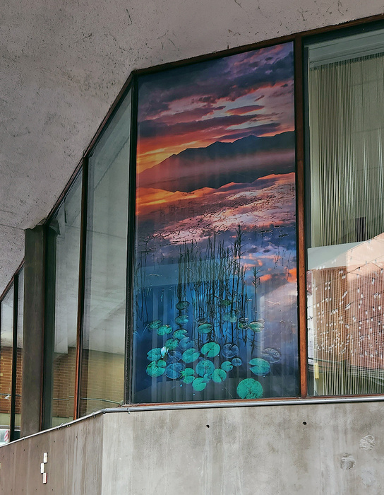 A recent imaginative use for some of my images to beautify and add interest and privacy to a window in a commercial space at FireFox Property Management in Concord, NH. This image from the White Mountains in NH covers an 8 foot high office window and allows light to enter the office but adds privacy due to the opaque nature of the print. Lonza Biologics in Portsmouth, NH is doing a similar project by installing images on their glass conference room walls to add privacy and beauty to the work space. A great idea for art in the workplace that goes beyond the traditional wall artwork.